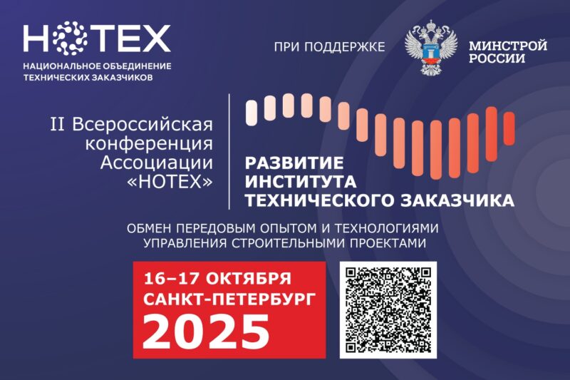 16—17 октября 2025 года в Санкт-Петербурге состоится II Всероссийская конференция Ассоциации «НОТЕХ» — «РАЗВИТИЕ ИНСТИТУТА ТЕХНИЧЕСКОГО ЗАКАЗЧИКА. Обмен передовым опытом и технологиями управления строительными проектами».