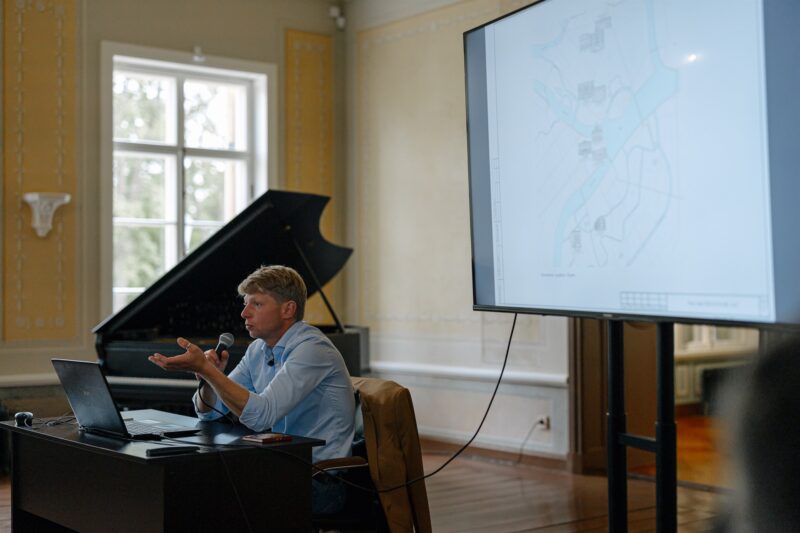 Симпозиум, который вел заместитель председателя оргкомитета «Золотого Трезини» Олег Дмитриев, был посвящен как изучению богатого прошлого Монрепо, так и поиску новых идей для его гармоничного развития в будущем.