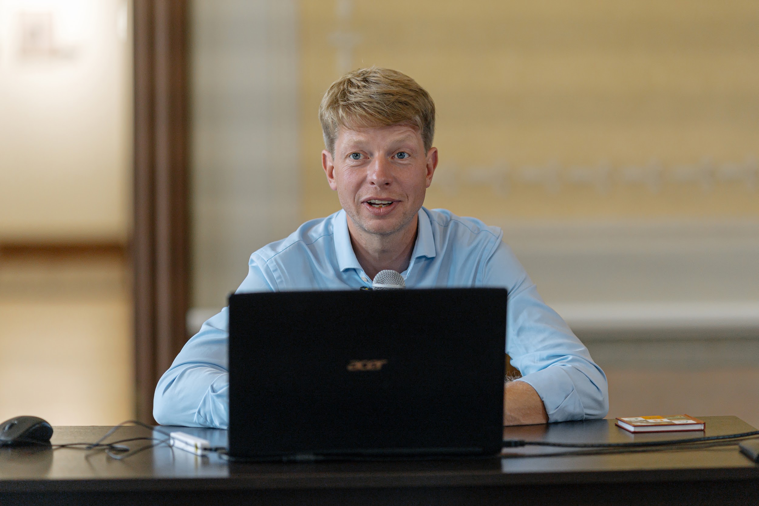 Не сговариваясь с предыдущим докладчиком, тему книг продолжил директор музея-заповедника «Парк Монрепо» Александр Смирнов. Он поделился ближайшими перспективами развития музейного комплекса, среди которых план создать на территории парка музей, посвященный Дмитрию Лихачеву и его идеям сохранения культурного наследия. А в отреставрированном и пустующем библиотечном флигеле Усадебного дома по договоренности с наследниками академика предполагается разместить его библиотеку. Проект будет по крайней мере частично реализован уже в 2026 году – к 120-летию со дня рождения Лихачева.
